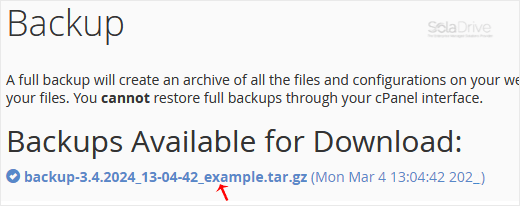After the cPanel backup is finished, you will receive a notification. You can download backups from Backup > Download a Full Account Backup.
