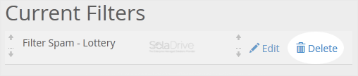 3. Under Current Filters are displayed all existing filters. Click Delete next to the appropriate one.
