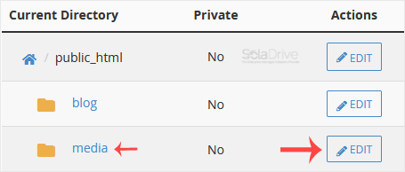 4. Click on the Edit, showing next to the directory you want to protect.