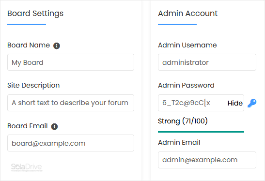 - Admin Username: Your new phpBB username (for security reasons, do not use the administrator or the admin username).