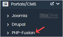 4. On the left side, type PHP-Fusion in the search box, then click the PHP-Fusion link that appears.