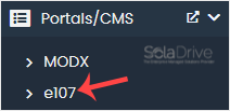 4. On the left side, type e107 in the search box, then click the e107 link that appears.