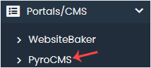 4. On the left side, type PyroCMS in the search box, then click the PyroCMS link that appears.