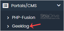 4. On the left side, type Geeklog in the search box, then click the Geeklog link that appears.