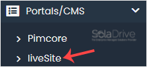4. On the left side, type liveSite in the search box, then click the liveSite link that appears.