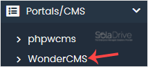 4. On the left side, type WonderCMS in the search box, then click the WonderCMS link that appears.